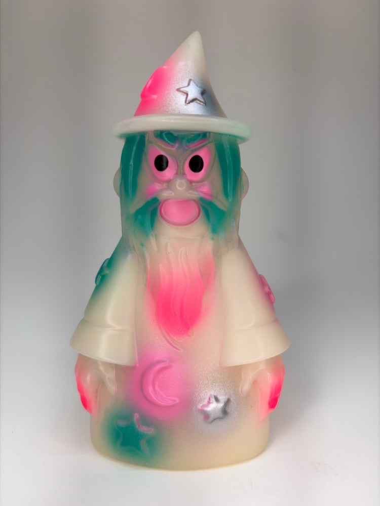 Glow in the dark sofubi Wizard. Designed & airbrushed by Adam Ace for Star Castle®